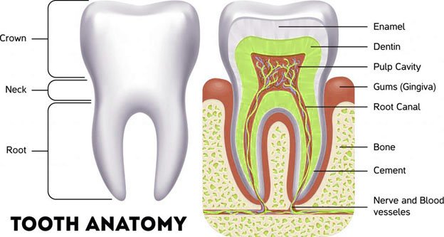 A "root canal" is not a treatment, but part of a tooth. It is the hollow section of a tooth that contains the nerve tissue, blood vessels, and other cells, also known as the pulp. A tooth consists of a crown and roots. The crown is mainly above the gum, while the roots are below it. The roots attach the tooth to the jawbone. Inside the crown and the root, or the root canal, is the pulp. The pulp nourishes the tooth and provides moisture to the surrounding material. The nerves in the pulp sense hot and cold temperatures as pain. The name of the dental procedure commonly referred to as a "root canal" is actually endodontic therapy, which means "inside the tooth." However, the term "root canal" has come to be commonly used to talk about the procedure.